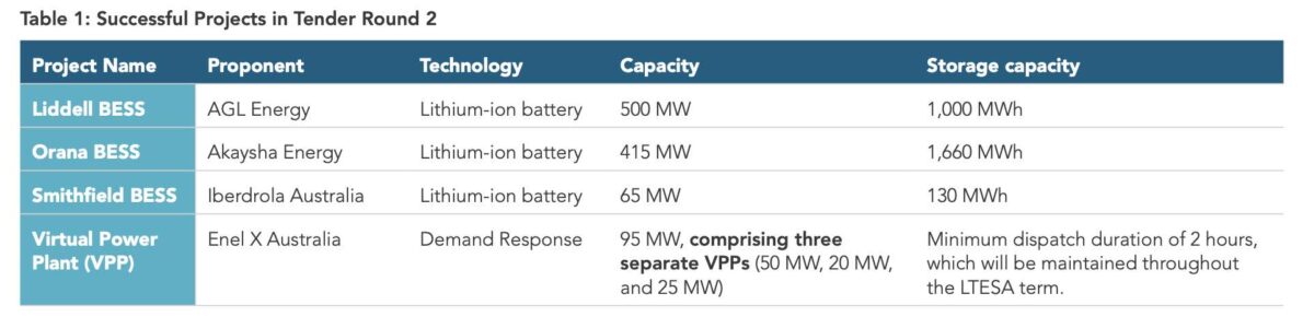 The winning projects made bids for long term energy supply agreements (LTESAs), and annual annuity payments. According to AEMO Services, the average price bid for the LTESAs was $32,000 a MW a year ($11,000 per MWh), while the annual annuity was capped at $40,000/MW (but not all bid).