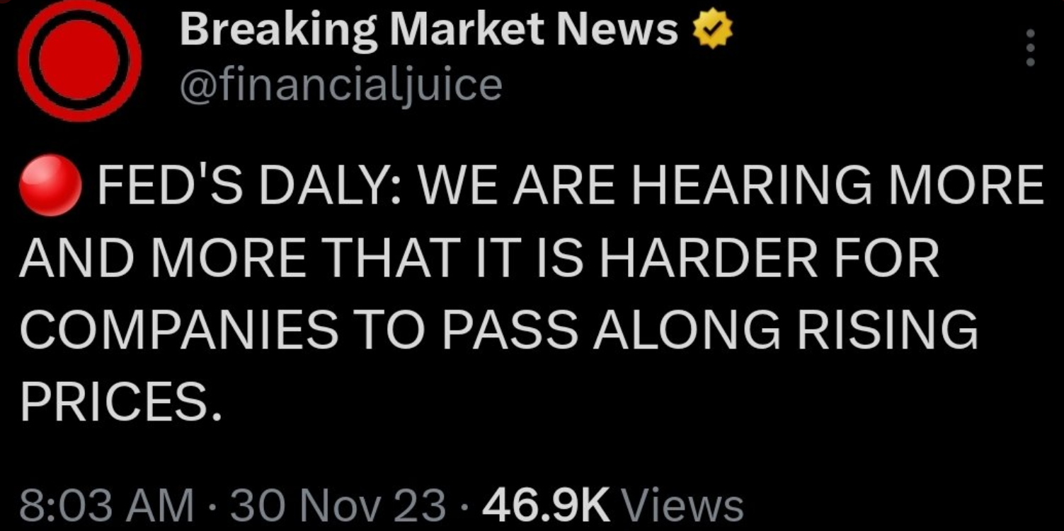 My point on corporate margins and not having inflation to protect them has been highlighted by the Fed's Daly: