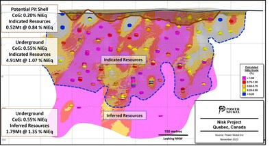TORONTO, Nov. 29, 2023 /PRNewswire/ - Power Nickel Inc. (the "Company" or "Power Nickel") (TSXV: PNPN) (OTCBB: PNPNF) (Frankfurt IVV) is pleased to release the initial NI 43-101 Mineral Resource Estimate on its "NISK" Nickel Sulphide project, located near Nemaska, James Bay, Québec.