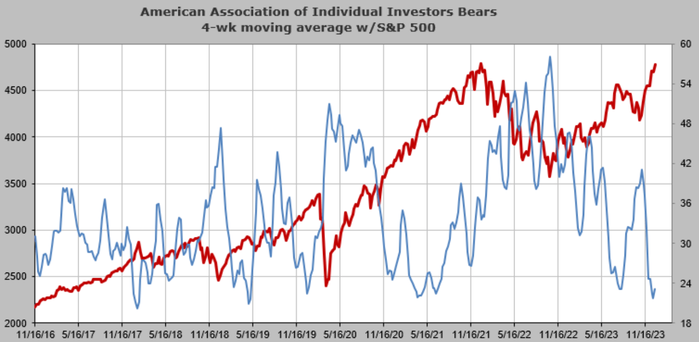As the S&P 500 ( SP500) continues its climb into the closing days of 2023, the American Association of Individual Investors noted that there has been an underlying shift towards a bullish position as many bearish investor viewpoints have faded.