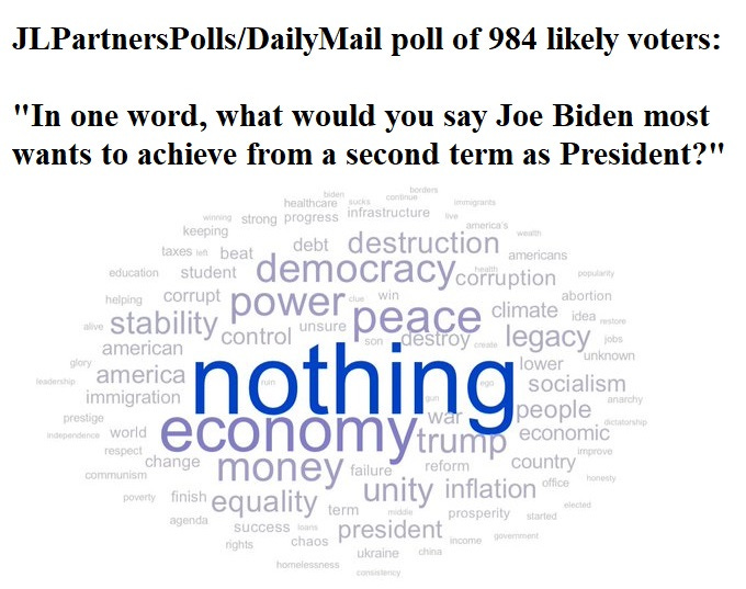 A pre-Christmas poll of 984 Americans by JLPartners on behalf of the Daily Mail asked voters to describe in one word what each candidate hopes to achieve in a second term.