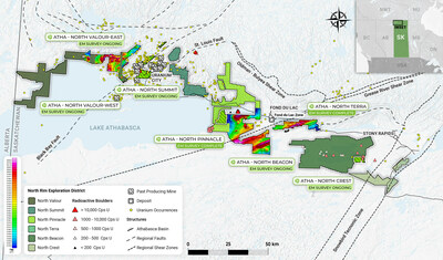 VANCOUVER, BC, Jan. 17, 2024 /CNW/ - ATHA Energy Corp. (CSE: SASK) (FRA: X5U) (OTCQB: SASKF) ("ATHA" or the "Company"), holder of the largest uranium exploration portfolio in the highest-grade uranium district in the world, is pleased to announce results from its large-scale electromagnetic ("EM") surveys at its 100%-owned North Valour-East Project (the "Project"). The Project is located in Saskatchewan's Athabasca Basin, within the Company's North Rim Exploration District (the "North Rim Exploration District").
