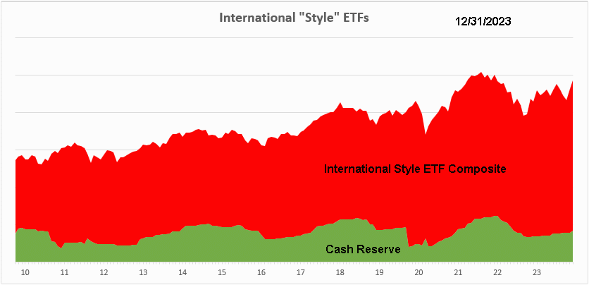 My portfolio of international "style" type ETFs didn't quite get back to previous highs during 2023 but did improve overall.
