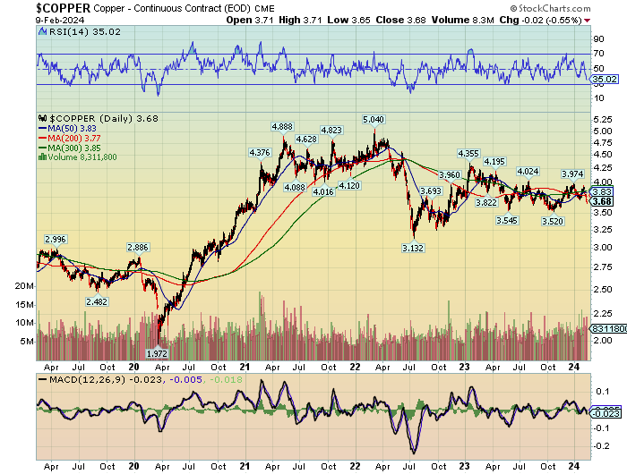 Copper made a big down move from $3.82 to $3.68 and has moved below its 200 dma.