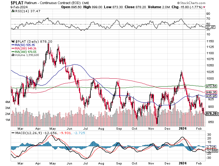 Platinum and palladium continued to move down and are well below their 200 dma. Palladium made new lows for the last 12 months.