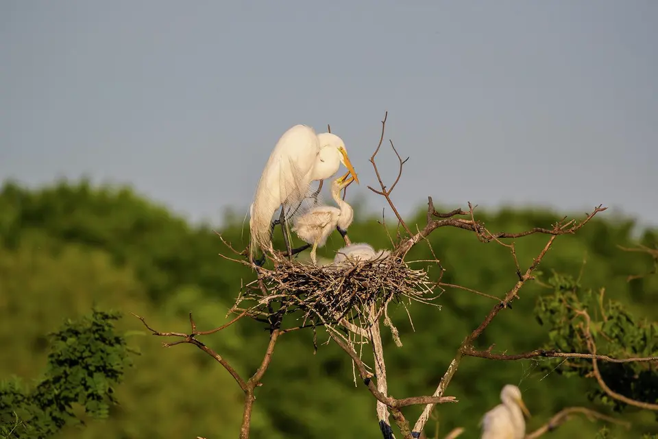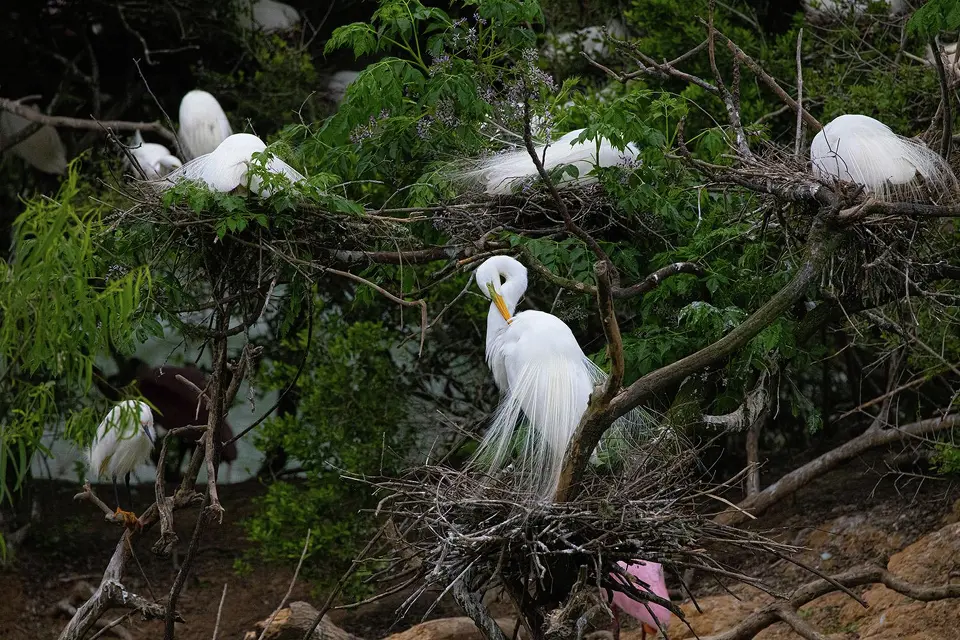 Visit the High Island waterbird rookery this spring to see great egrets and other waterbirds decked out in their breeding plumage.
