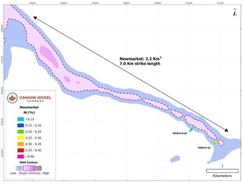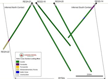 Mark Selby, CEO of Canada Nickel said, "Our 2024 exploration program has started very strongly with the best drill interval to date at Reid and a new discovery at Newmarket. The long drill interval of higher-grade material at Reid is very encouraging and the first section delineating an over 800 metre width of target ultramafic sequence - nearly 2 times thicker than Crawford - highlights the very large-scale potential of this property".