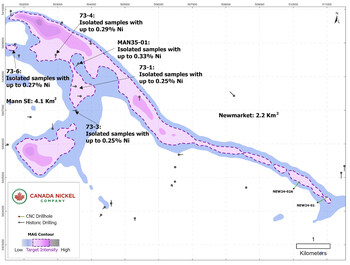 Figure 4 – Newmarket – Mann Southeast targets (CNW Group/Canada Nickel Company Inc.)