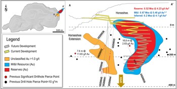Drilling in 2024 will continue to target the Horseshoe Extension as more optimal drill locations become available with more underground development and will also target infill drilling of inferred mineralization at lower Horseshoe.