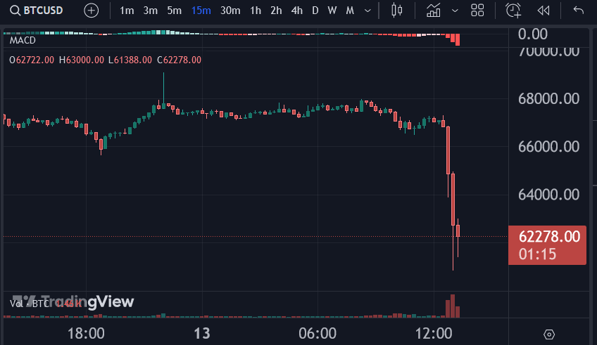 Bitcoin plummets from $67k - $61k within 30 minutes of Iran's drone attack on Israel. What's the explanation for that, I wonder, among BTC believers.