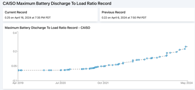 Battery discharge on the California Independent System Operator's grid reached 25 percent of load April 16, surpassing the previous 22-percent record set just 10 days prior.