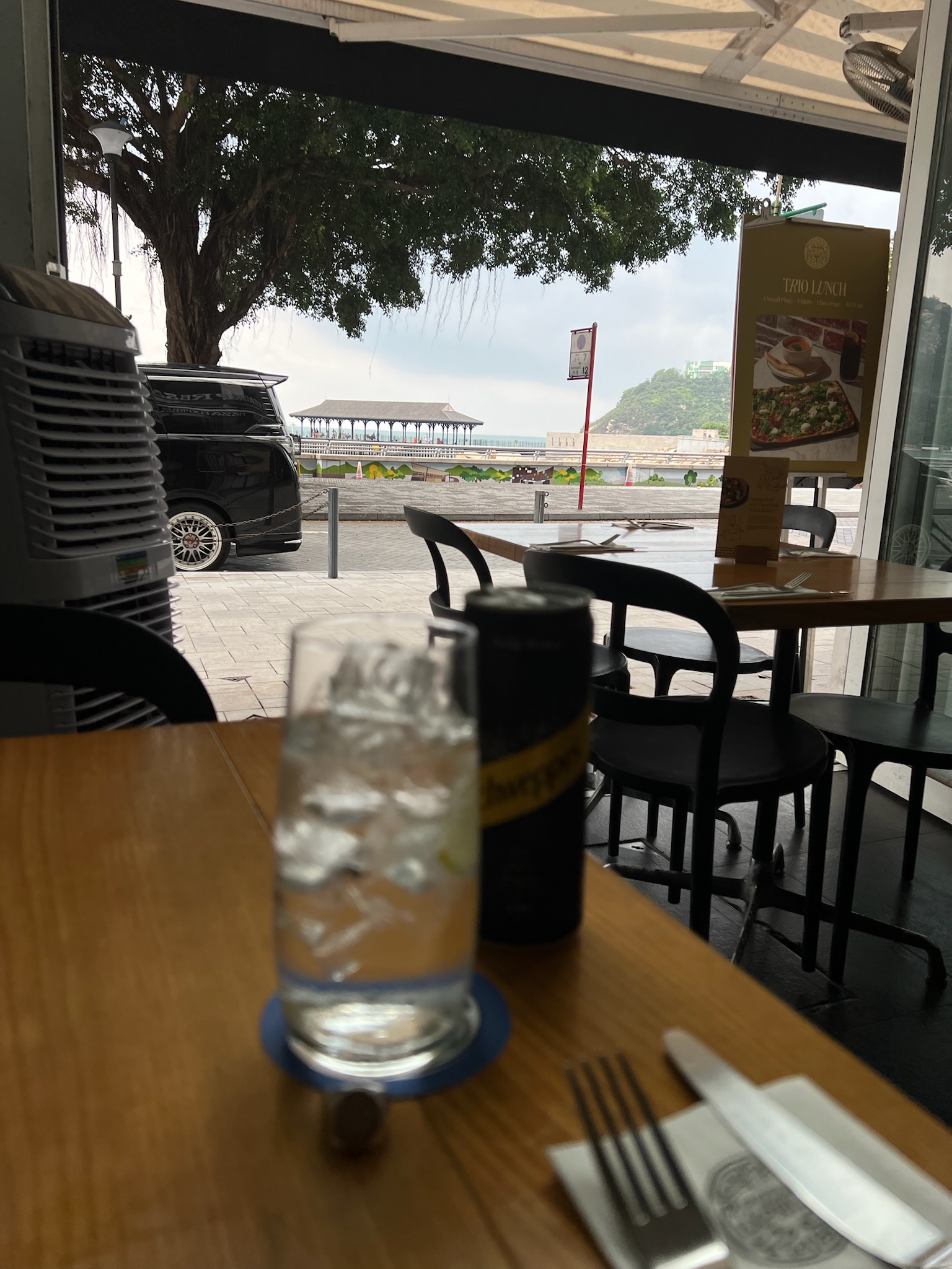 Waiting, right now, taking break from toil, near temporary abode