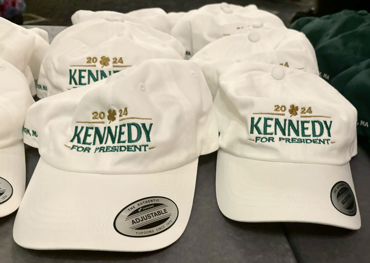 Robert F. Kennedy Jr. is fundraising in Massachusetts — and handing out hats. | Kelly Garrity/POLITICO