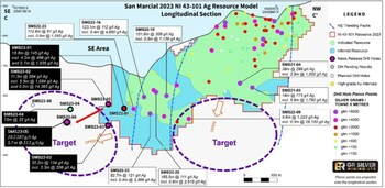 In management's view, the San Marcial area represents an important focus for exploration given its silver-dominant mineralization (46 million ounces of silver in the Indicated Category and 14 million ounces of silver in the Inferred category), scalability, significant widths, and shallow depths (Figures 2 and 3). Simultaneously, management intends to advance technical studies and permitting for San Marcial's potential development.