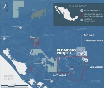 Figure 1: GR Silver Mining Plomosas Project mining concessions, Sinaloa, Mexico. (CNW Group/GR Silver Mining Ltd.)