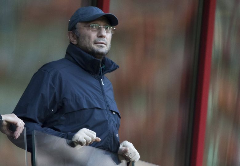 Russian billionaire Suleiman Kerimov watches the Europa League soccer match. Kerimov has been designated for sanctions by US officials, for being an official of the Government of the Russian Federation. (Alexander Zemlianichenko / AP, 2012)