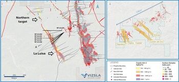 "Our ongoing exploration campaign continues to expand and convert near-surface mineralization at La Luisa," commented Michael Konnert, President and CEO. "La Luisa is one of the newest discoveries Vizsla Silver has made in the Panuco district, and currently hosts 4 million ounces of indicated and 25 million ounces of inferred silver equivalent resources. Recent exploration has not only expanded the Luisa mineralized footprint well beyond the 2024 MRE boundary, but new mapping utilizing Terraspec® technology to identify alteration minerals, has helped validate our local exploration model. We have now identified two potential feeder zones within a target depth horizon, which we will test in the near future as we continue to expand and de-risk the Panuco project ahead of the maiden project PEA in Q3 2024.