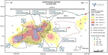 Figure 3: Longitudinal section of the Footwall Vein at La Luisa. (CNW Group/Vizsla Silver Corp.)