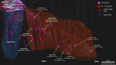"The ongoing surface and underground drilling program at Granite Creek continues to confirm impressive high-grade gold mineralization, including over substantial widths.", stated Tyler Hill, Chief Geologist of i-80. "Importantly, the South Pacific Zone is expected to become the primarily source of mineralization at Granite Creek and remains open along strike to the north and at depth, providing considerable upside."