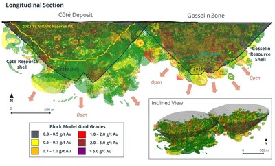On its news release dated February 15, 2024, IAMGOLD also announced that the Gosselin Mineral Resource estimate increased, for a total of 4.4 million Indicated Resource gold ounces in 161.3 million tonnes at 0.85 g/t Au, and 3.0 million Inferred Resource gold ounces in 123.9 Mt at 0.75 g/t Au. Technical studies are planned to advance metallurgical testing, conduct mining and infrastructure study to review options for the potential inclusion of Gosselin into the future Côté life of mine plan. IAMGOLD announced planned exploration expenditures at Gosselin of $5.0 million on a resource delineation drilling program and in their corporate presentation dated February 2024, IAMGOLD also stated that it expects to complete 35,000 meters of exploration drilling at Gosselin in 2024. Please see Figure 1 for the Côté and Gosselin Longitudinal Section outlining the current extent of mineral resources and opportunities for resource expansion.