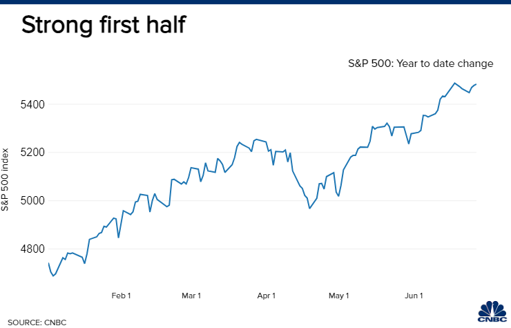 Stellar. Strong. Much better than anticipated. Those are all adjectives that describe how stocks have done in the first six months of 2024.
