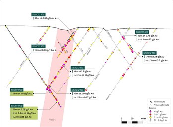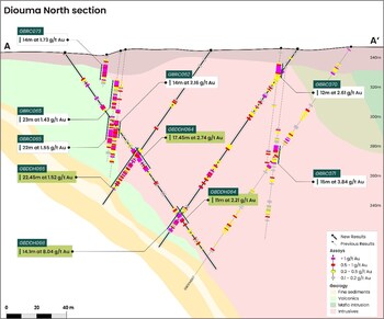 - Diouma North: 14.10m at 8.04g/t Au and 17.45m at 2.74g/t Au, 22.45m at 1.52g/t Au