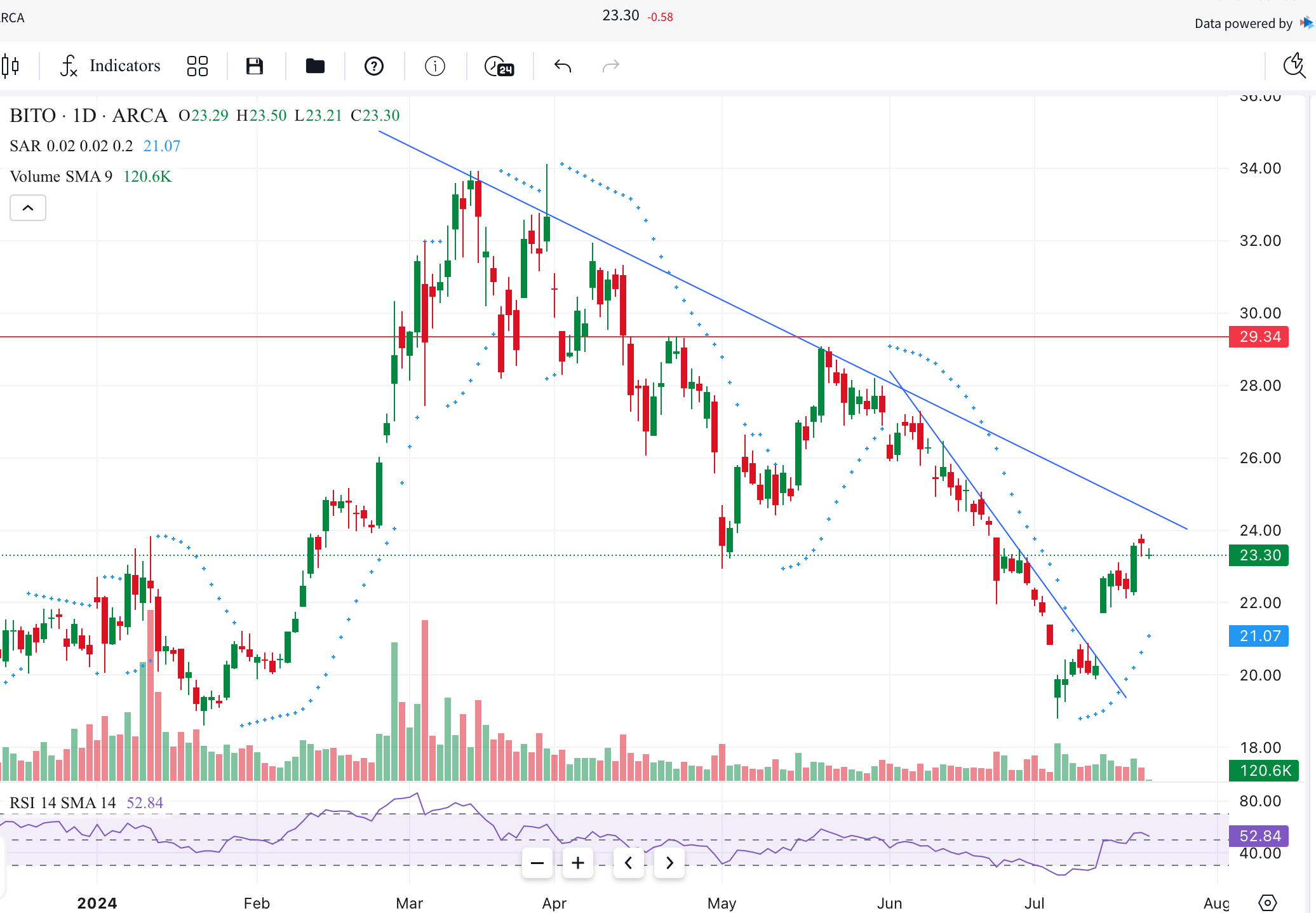 Looks like BITO (BTC futures ETF) traced out a rather pretty impulse up - out of the correction lows.
