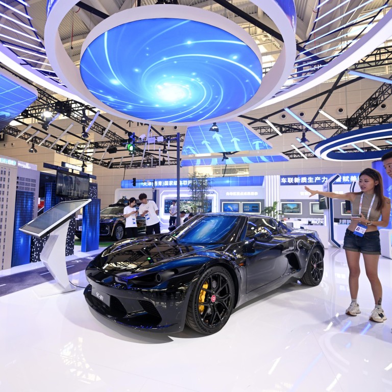 Visitors look at an electric sports car displayed at the World Intelligence Expo 2024 in Tianjin. China has doubled subsidies for EV buyers to spur sales. Photo: Xinhua