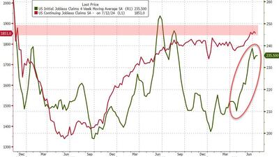 Continuing jobless claims continue to hold above the 1.8 million Maginot Line - at their highest since Dec 2021...