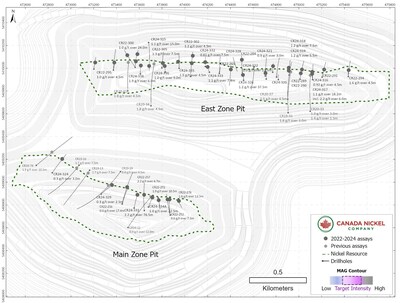 TORONTO, July 31, 2024 /PRNewswire/ - Canada Nickel Company Inc. ("Canada Nickel" or the "Company") (TSXV: CNC) (OTCQX: CNIKF) today announced additional results from its drilling program targeting the PGM zones that occur along the Crawford Main and East Zone boundaries and within the existing mine plan outlined in the Crawford Nickel Project feasibility study.