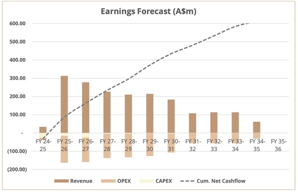 Figure 1: Endeavor Forecasted Revenue, OPEX and Capex (Source: Polymetals press release dated August 5, 2024) (CNW Group/Metalla Royalty & Streaming Ltd.)
