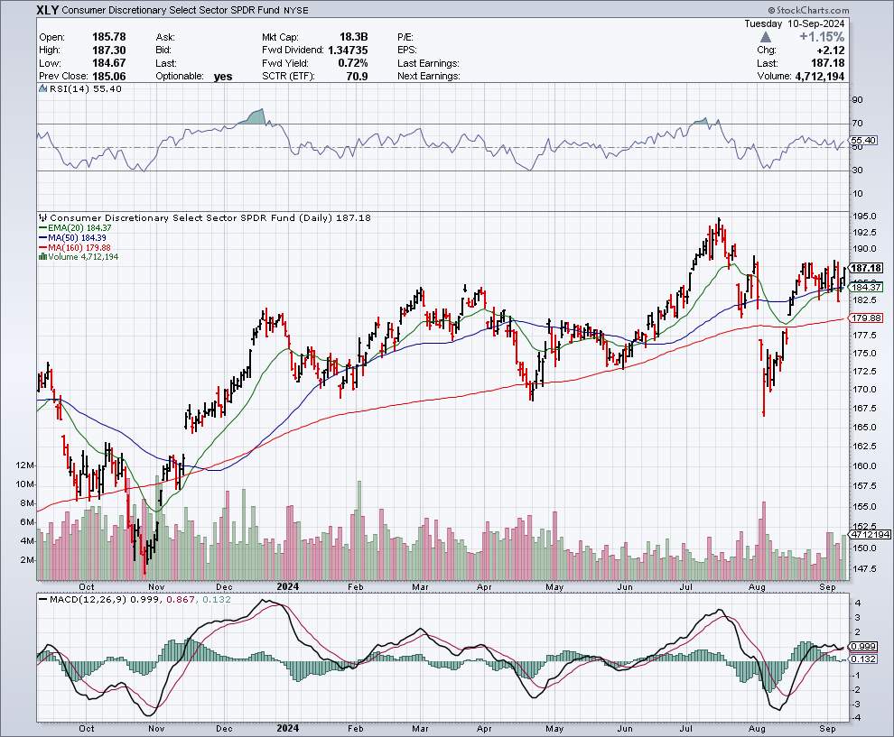 Consumer discretionary is waiting after a short term rally. Traders are not sure about consumer demand.