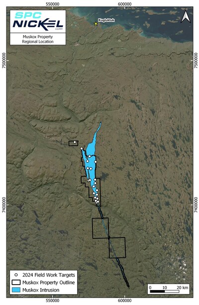 SPC Nickel Corp. Sep 09, 2024, 07:00 ET SUDBURY, ON, Sept. 9, 2024 /CNW/ - SPC Nickel Corp. (TSXV: SPC) ("SPC Nickel" or the "Company"), is pleased to report assay results from its 2024 exploration program at the Company's 100%-owned 650 km2 Muskox Ni-Cu-PGM Project ("Muskox" or the "Project") located approximately 75 km south of the coastal Hamlet of Kugluktuk within the Kitikmeot Region of Nunavut (Figure 1). Results confirm widespread high-grade base and precious metal mineralization associated with multiple geological environments within the Muskox Intrusion.