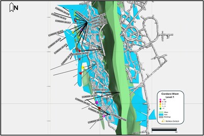 Figure 2: Location of Q2/Q3 drillholes targeting the Cordero Level 1 Zone (CNW Group/Soma Gold Corp.)