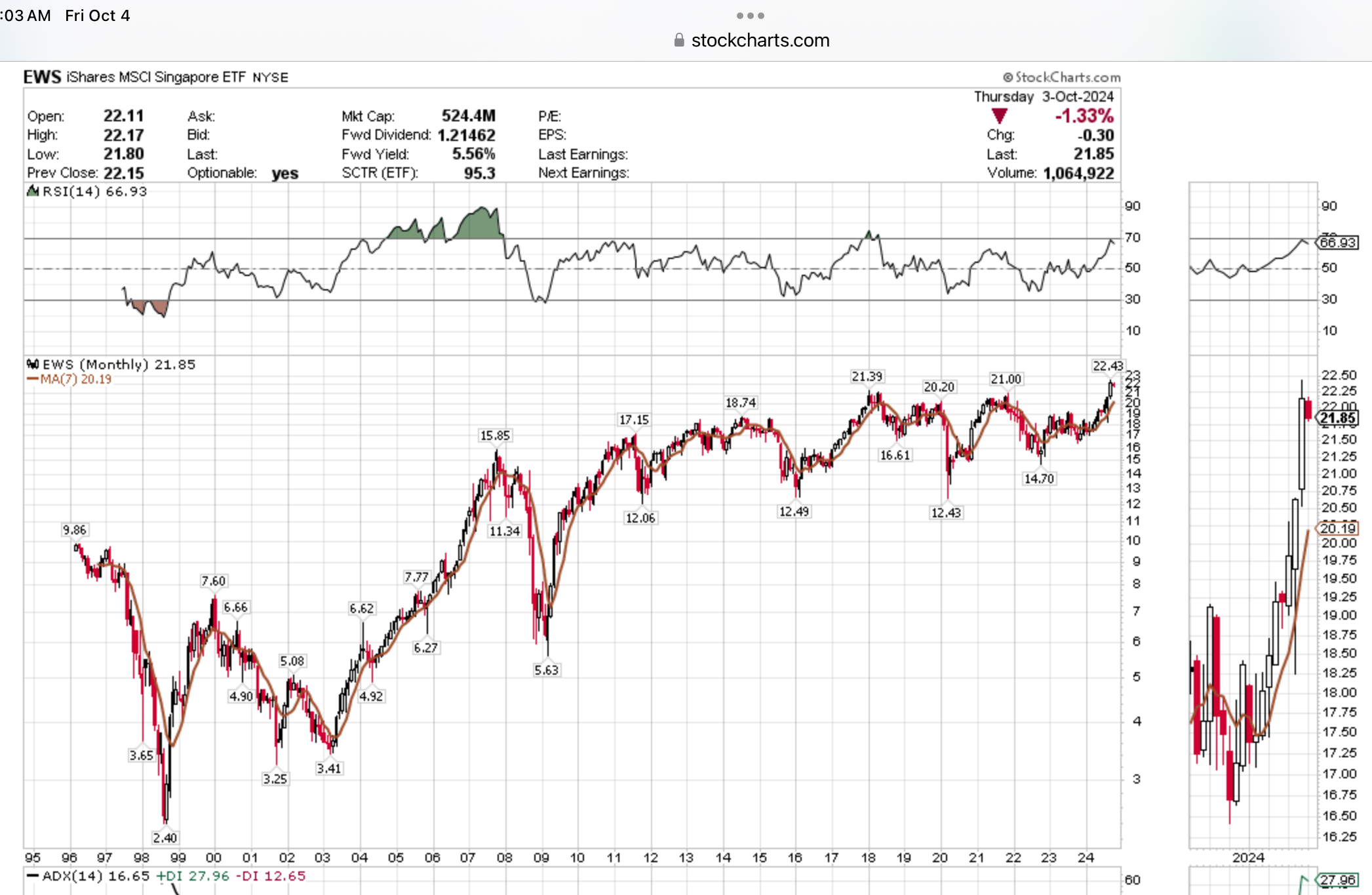 An interesting one is EWS. Literally last month it broke above the multi-year resistance near 21. Now, pulling back a little.