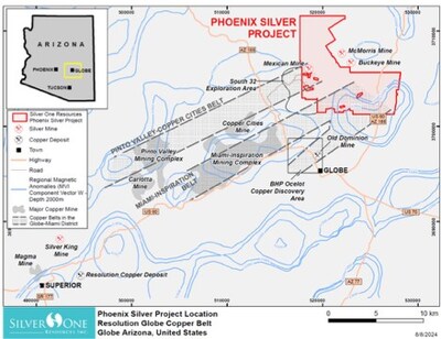VANCOUVER, BC, Oct. 8, 2024 /PRNewswire/ -- Silver One Resources Inc. (TSXV: SVE) (OTCQX: SLVRF) (FSE: BRK1) ("Silver One" or the "Company") is pleased to announce it has commenced a property-wide airborne geophysical survey at its high-grade Phoenix Silver Project located near Globe, Arizona.