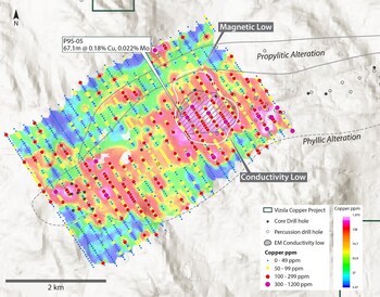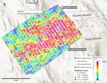 - Copper, molybdenum and silver soil geochemical anomalies are coincident with geological and airborne geophysical targets