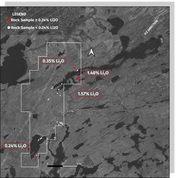 Figure 7: Collected rock samples with Li2O anomalies (CNW Group/Comet Lithium Corporation)
