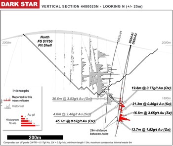 Dark Star Deposit – Extending oxide gold mineralization 75m down dip and 85m along strike