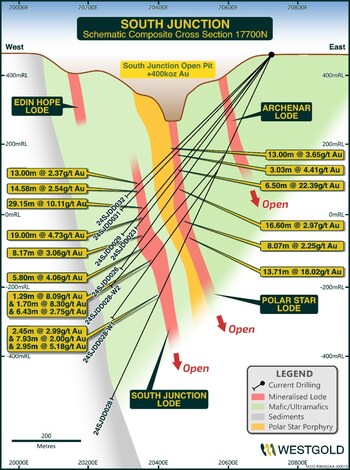 Westgold Resources: Polar Star Lode Emerges at Bluebird-South Junction 13.71m @ 18.02g/t Au in drill hole 24SJDD028