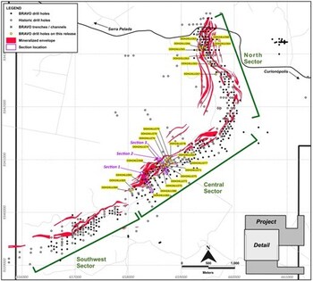 Figure 4: Location of Bravo Drilling and Sections Reported in this News Release (CNW Group/Bravo Mining Corp.)