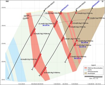 Highlights include 21m at 9.34g/t PGM+Au, 116m at 1.59g/t PGM+Au,