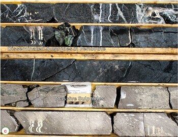 • Intersects 3.9 metres of massive sulphide within 12.7 metres of mineralization