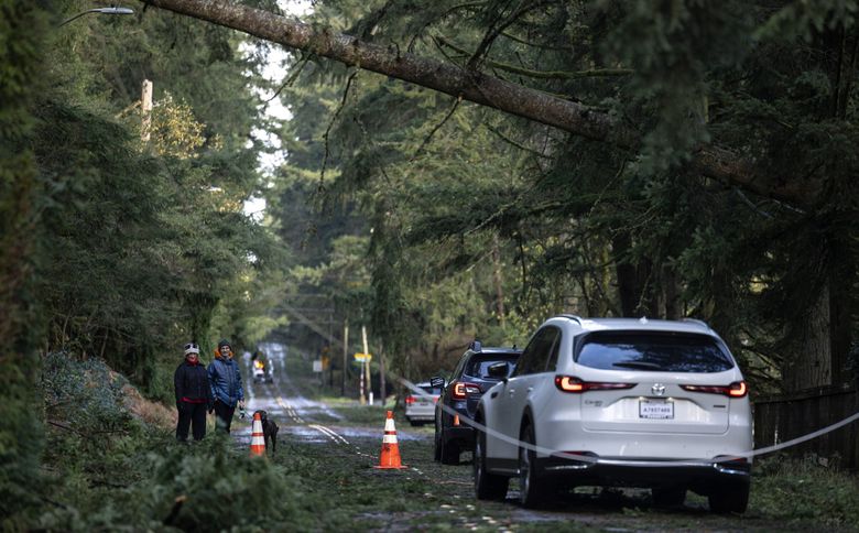 Air over Western Washington rushed toward that low-pressure trough, generating wind gusts of up to 74 mph in places. Hundreds of thousands of people lost power, marking Seattle’s most severe outage since 2006, while two died in the maelstrom. A woman was killed by a falling tree at a Lynnwood homeless encampment. In Bellevue, a 65-year-old another woman was killed by a tree that smashed into her home while she showered. The surrounding neighborhood was struck hard.