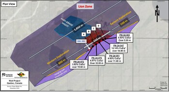TORONTO, Dec. 2, 2024 /CNW/ - Power Nickel Inc. (the "Company" or "Power Nickel") (TSXV: PNPN) (OTCBB: PNPNF) (Frankfurt: IVV) is pleased to present a thorough exploration update on its discovery of the Lion Zone at its Nisk Project near Nemaska Quebec. The Company is also pleased to be publishing the drill assay database to date for the Lion Zone on the company's website.