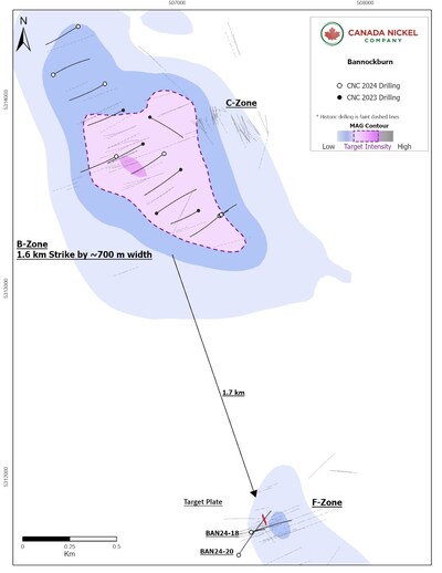 TORONTO, Dec. 5, 2024 /CNW/ - Canada Nickel Company Inc. ("Canada Nickel" or the "Company") (TSXV: CNC) (OTCQX: CNIKF) is pleased to announce assay results for drill hole BAN24-20 at the Company's Bannockburn property, which intersected 15.7 metres of net-textured sulphides within a disseminated sulphide-bearing peridotite. Bannockburn is one of the Company's southern exploration properties in the Timmins Nickel District.
