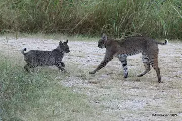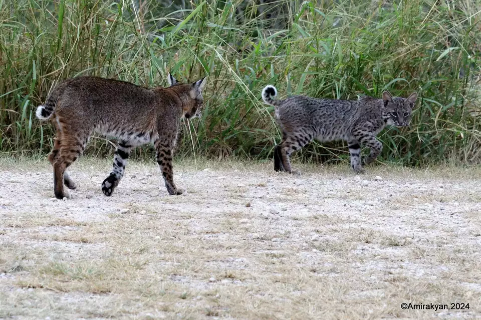 Andre Mirakyan captured a mother bobcat "paddling" her kitten at Estero Llano Grande State Park. Andre Mirakyan The once-in-a-lifetime encounter lasted for a few minutes until the bobcats walked up the road and disappeared into the bush. It's an experience Mirakyan won't soon forget. "A lifer for me in a big way!" he said.