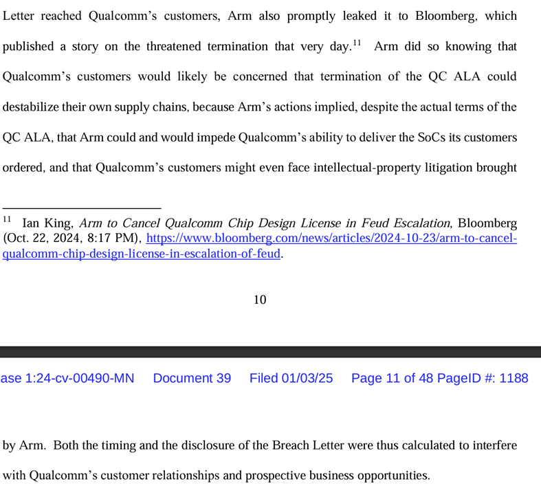 From point and from Arm's self-remedy by attempting to terminate the ALA and leaking that to Bloomberg: