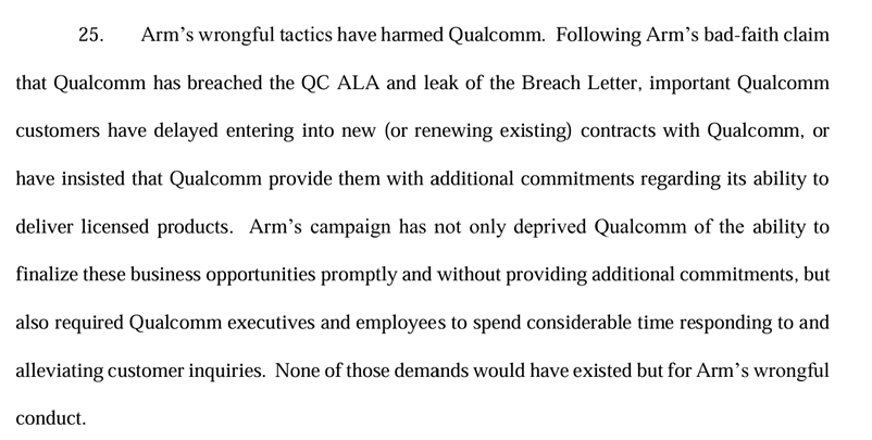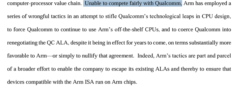 Qualcomm continues to tie these points together to show that Arm was not seeking to enforce anything but attempt to force Qualcomm to the negotiating table by not allowing them to ship x-elite and the server SoC