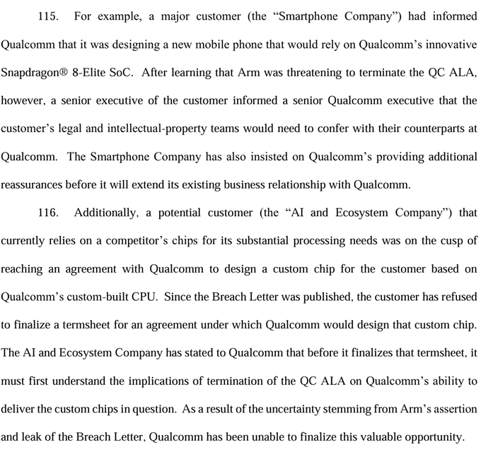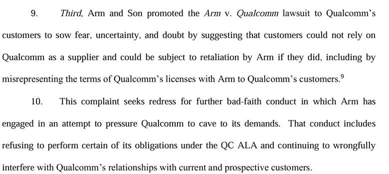 4) Lying to Qualcomm customers, attempting to have them intervene on Arm's behalf and reading between the line, threatening them if they purchased and used Qualcomm custom CPUs developed by the Nuvia team.